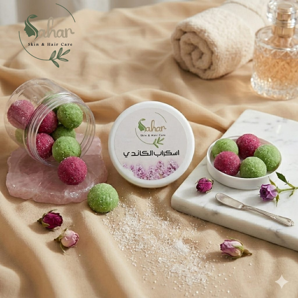 🌸خذي كميه مناسبه من اسكراب الكاندي وضعيها علي البشره.